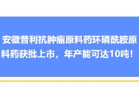 安徽普利抗肿瘤原料药环磷酰胺原料药获批上市,年产能可达10吨!