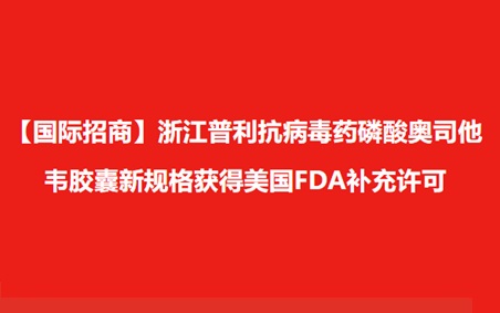 【国际招商】浙江普利抗病毒药磷酸奥司他韦胶囊新规格获得美国FDA补充许可!