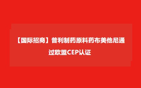 【国际招商】普利制药原料药布美他尼通过欧盟CEP认证