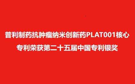 普利制药抗肿瘤纳米创新药PLAT001核心专利荣获第二十五届中国专利银奖